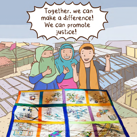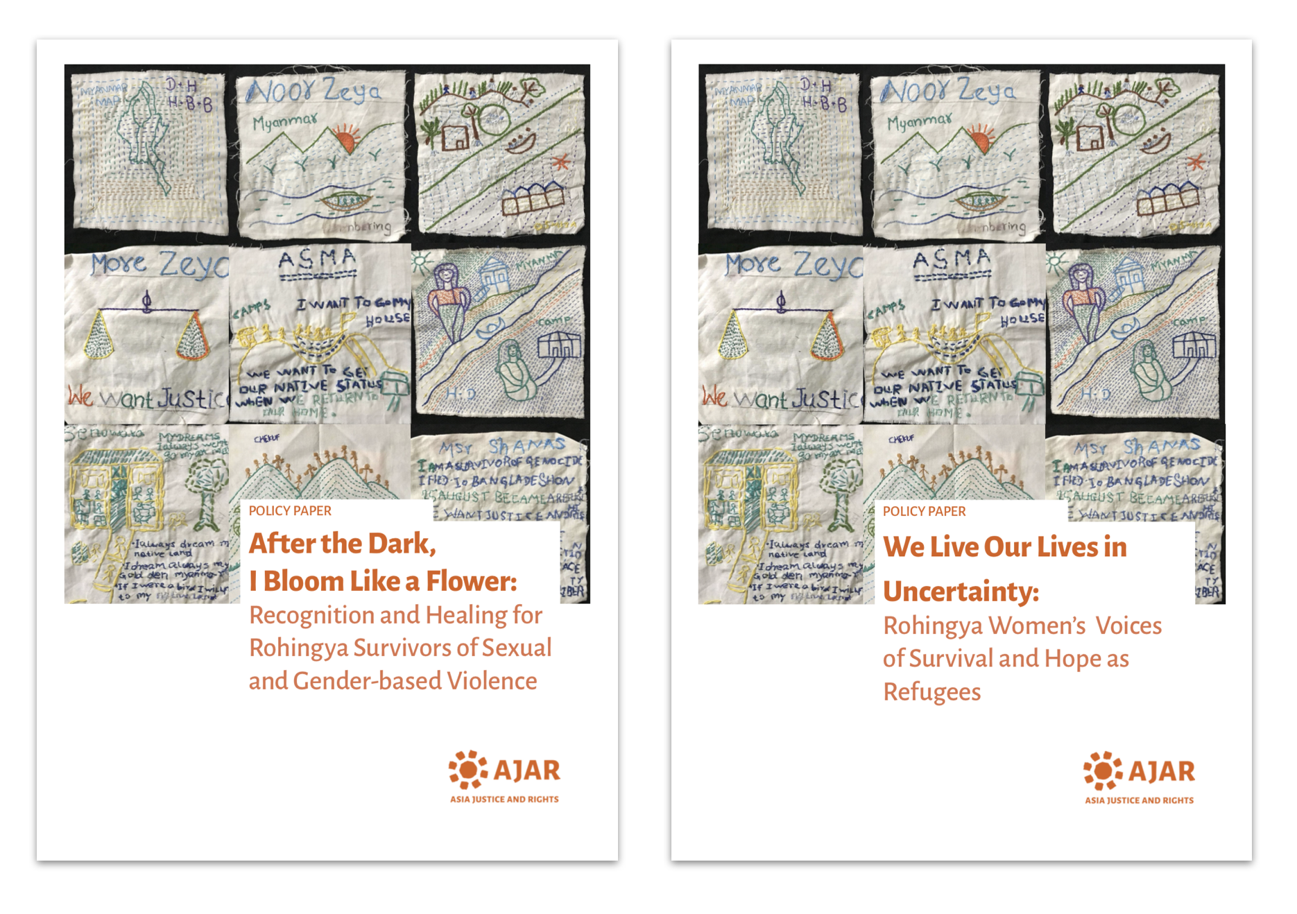 This illustrated guide explains the different international mechanisms advancing justice for the Rohingya, by following a fictional character as she shares her story and information about the mechanisms with others in her community. When crafting this story, Asia Justice and Rights and Liberation War Museum Bangladesh relied on their experiences working with female Rohingya refugees in Cox’s Bazar. The images that accompany the story were taken from quilts produced by the women depicting their real-life memories and hopes.